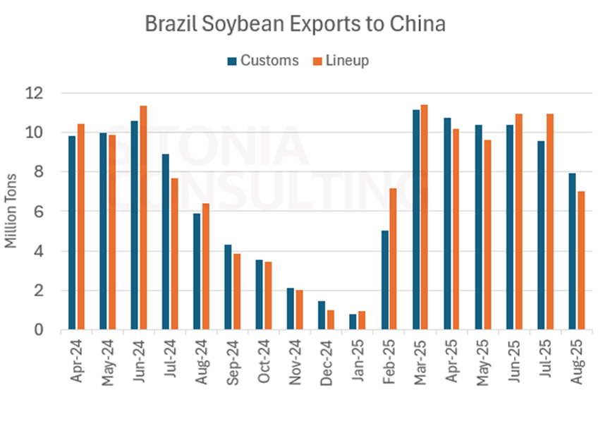 Trong tháng 8, Trung Quốc đã nhập khẩu kỷ lục 12,3 triệu tấn đậu nành, tăng 5,3% so với tháng 7 và tăng 1,1% so với năm ngoái. Lượng đậu nành nhập khẩu hàng tháng từ tháng 5 đến tháng 8 cũng đã lập kỷ lục mới trong những tháng đó. Tính đến hết năm nay, Trung Quốc sẽ nhập khẩu tổng cộng 96,5 triệu tấn, tăng 3,4% so với năm ngoái.
